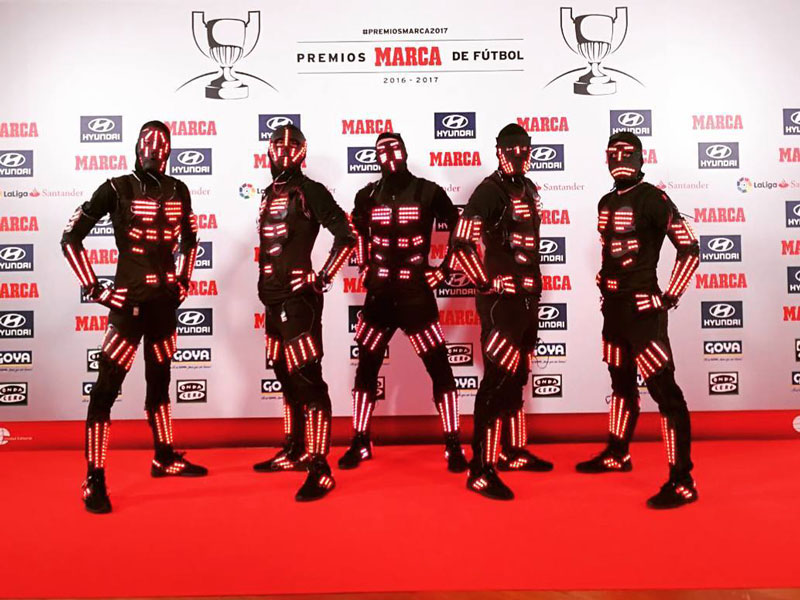 Having entertained audiences at numerous corporate, promotional and VIP events all across Spain, some of our LED dance group’s previous clients include renowned brands such as Mercedes, Sephora ,Adecco, Heineken and Clavei, to name but a few. In addition to their popularity for event entertainment, our LED dance group is also an innovative way to attract your guests’ attention.
