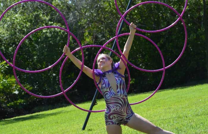 Incredible hula hoop dancer will dazzle audiences with vibrant colours, dance moves and a grand finale of spinning three hoops on fire