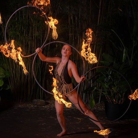 Integrating amazing costumes and eye catching choreography, each hoop performance is unique and customisable with fire, LED props, music and more