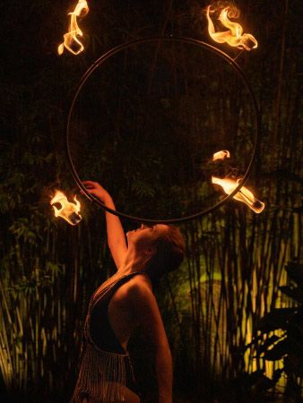 Able to twirl one to six glowing hoops at once, it's the perfect circus entertainment to book for festivals, weddings or corporate events