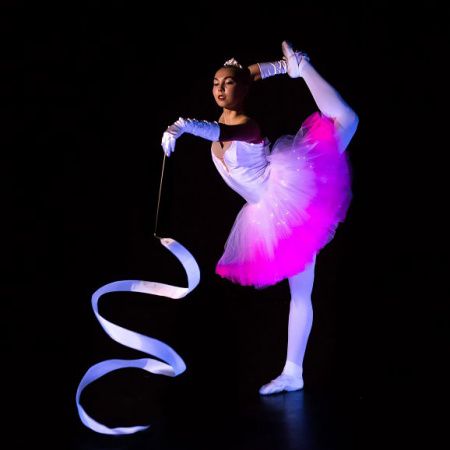 UV backlight effects have never been so beautifully used on a stage production. Our talented LED ballerinas will delight viewers at your event with their glowing pink tutus illuminated with small white lights. Their ballet dresses together with their gymnastic twirling ribbons are only overshadowed by their rhythmic gymnastic tricks and moves, perfectly syncrohinsed with the music they perform to.