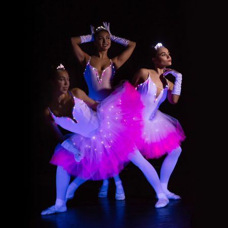Amaze guests at your event with this beautiful LED Gymnastics Trio. This group of three talented ballerinas takes LED dance to the next level with their original staging and their sweet tutus. Our luminous dance show is the ideal entertainment option for your award ceremony, evening party or beauty pageant.