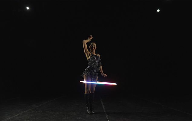 Mastering hoop and ballet at a young age, this LED hula hooper built a strong foundation for a versatile circus and acrobatic career