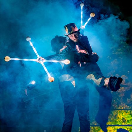 Exciting and visually engaging, our crew of dancers and jugglers will put on a glow-in-the-dark show thanks to their LED costumes and elements