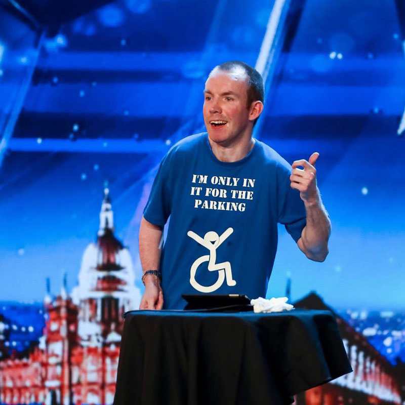 While disability and living with cerebral palsy are central themes to his act, Ridley’s stand-up covers a breadth of topics from roasting the political establishment to the country’s welfare system. He has performed in a corporate setting for Barclays, The Royal College of Nursing, Exeter University, Leeds Jewish Welfare Board, The Royal College of Occupational Therapists, the BBC (internal), Scope, Motability, Communication Matters and several branches of the NHS.