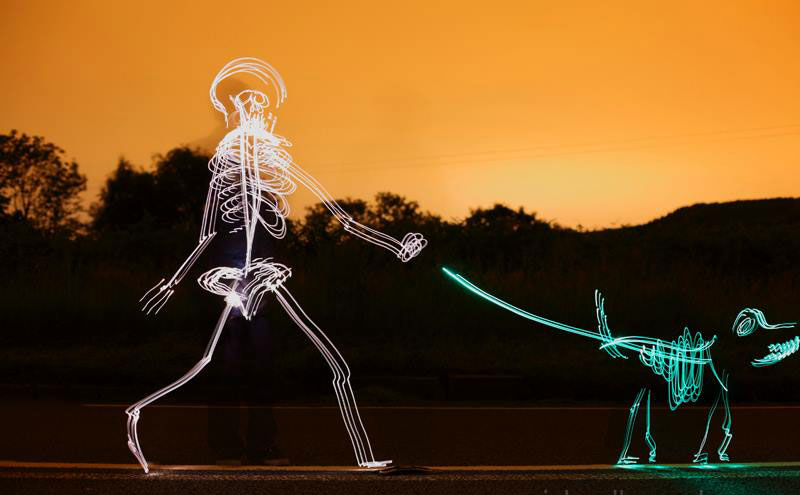 Putting the camera in a long exposure and using it to create incredible words, images and figures his amazing figures all appear to interact with their surroundings in a way that’s comical, fun and highly engaging. Filling an environment with 3 dimensional ‘brush strokes’, vibrancy and energy, Michael turns the ordinary into the extra-ordinary.