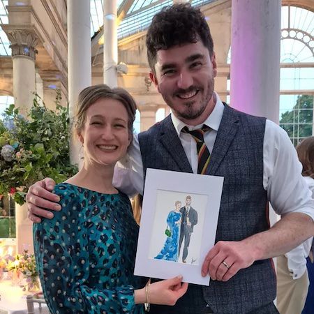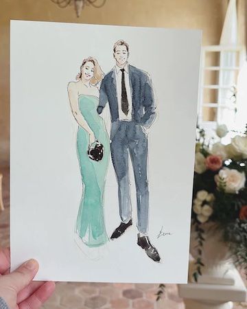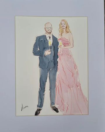 Her watercolour portraits can be drawn live as guests pose or from photo references, allowing them to continue mingling during the event