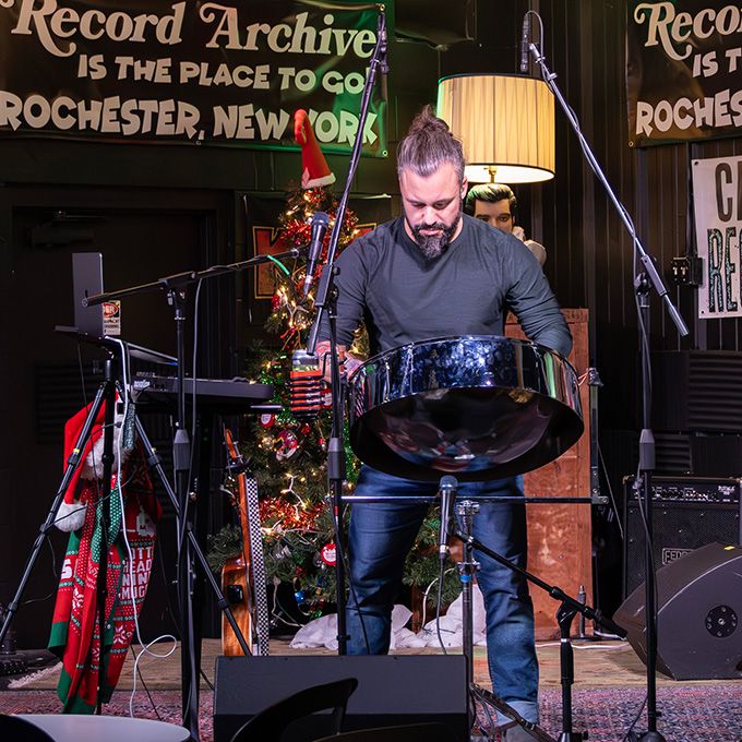 " “I recently went to a new bar in Rochester, NY, in the form of a “speakeasy”, which was already a cool idea. But what really blew me away was [this performer], who was playing a live set with his steel drum. He is an incredible musician and a complete ensemble all by himself, constructing and creating a musical world, from the rhythm section to the bass and guitar and even special percussion sounds, all through careful looping. It’s fascinating to watch and hear how it all unfolds, like watching a magician at work. And then, on top of this “band” he uses his steel drum to play melodies, adding subtle harmonic touches to create a world that transports everyone to the beautiful, white sandy beaches of our imaginations. We were singing along and enjoying the vibe [he] created with each song. He’s a great musician with a unique approach to performing live, and I can see him performing all over the world!” "