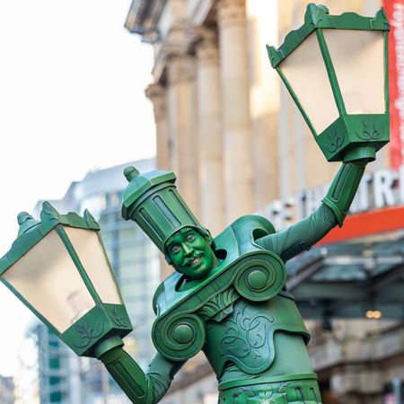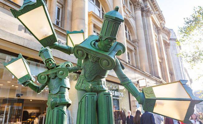 Their carefully constructed costumes are made to resemble old-fashioned or elegant Victorian lamp posts and they do actually light up
