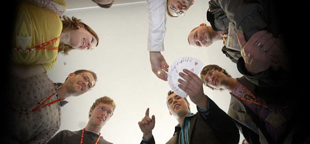 As a close-up magician Kai amazes at the tables of guests or as a "walk around act" in the audience. Items disappear to reappear in all the wrong places. Finger rings penetrate a shoelace, paper turns into cash, the spectator signed card appears in the wallet to match.
