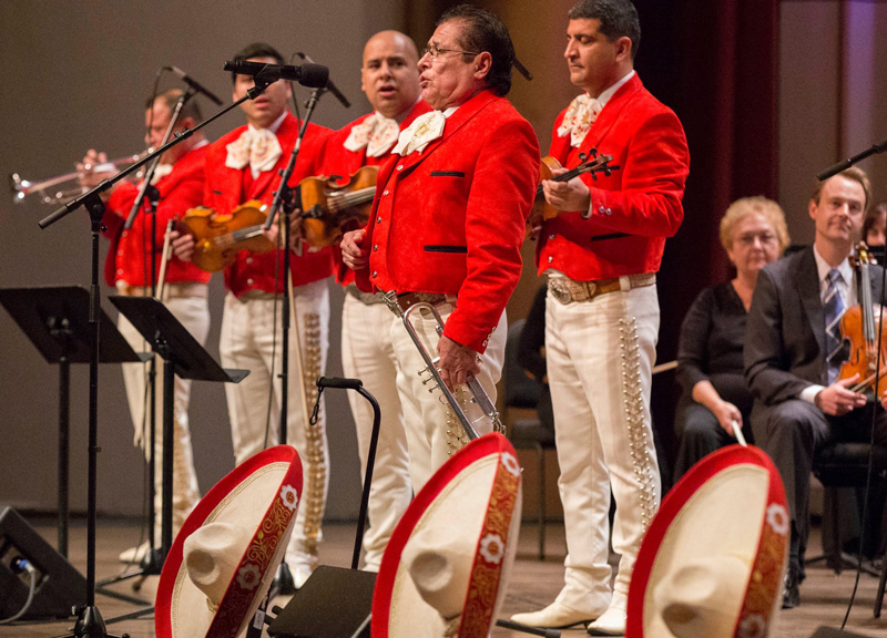 Renowned international mariachi band plays traditional Mexican music in traditional mariachi suits