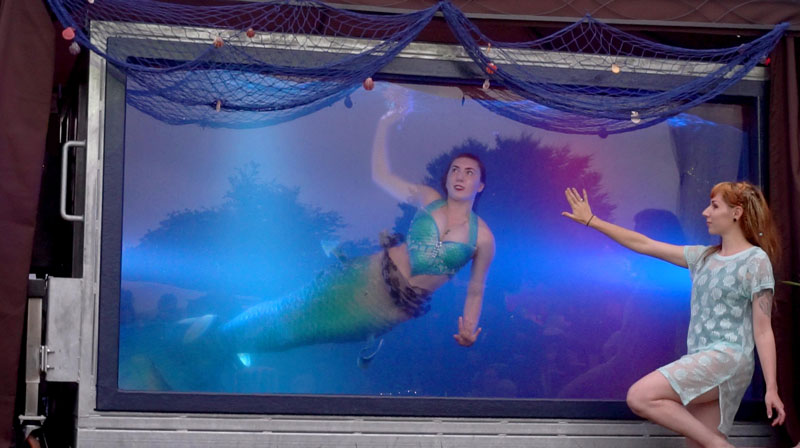 No pool? No problem! With a portable performance tank designed especially for our mermaids and mermen, it is the only one of its kind in the UK. With a water capacity of over 7000 litres, it is one of the largest performance tanks in the world and perfect for splashing and playing about in.