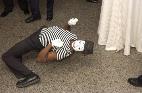 Mime skits are tailored made about the bride and groom or husband and wife. Basically, Etenem finds out about both of their mannerisms and characteristics and then acts out how they both met, what a typical date was like and the proposal. All of this is acted out whilst switching between “being” both individuals…with some slight exaggeration of course. It is extremely entertaining and it gives guests an opportunity to see a bit of their history. This is also great for showers, staggettes and anniversaries.
