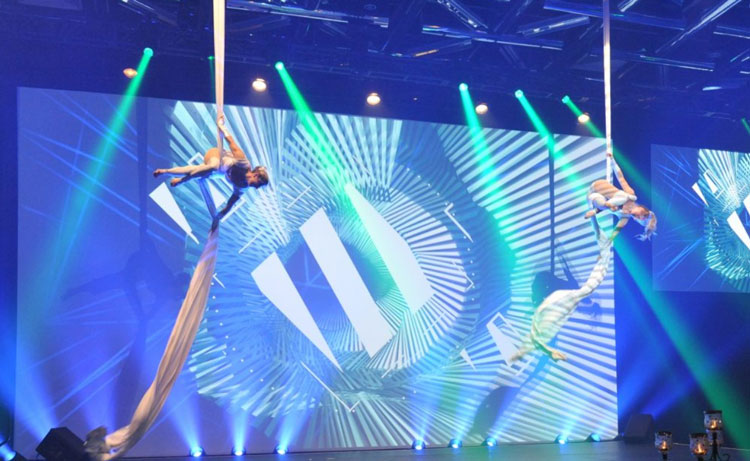 Guaranteed to astound and amaze these high-end aerialists stun from above and make for the ultimate corporate entertainment. Whether you desire ambient entertainment or wow factor stage shows, our Montreal Aerialists can customise their performances to impress your guests and complement your event effortlessly.