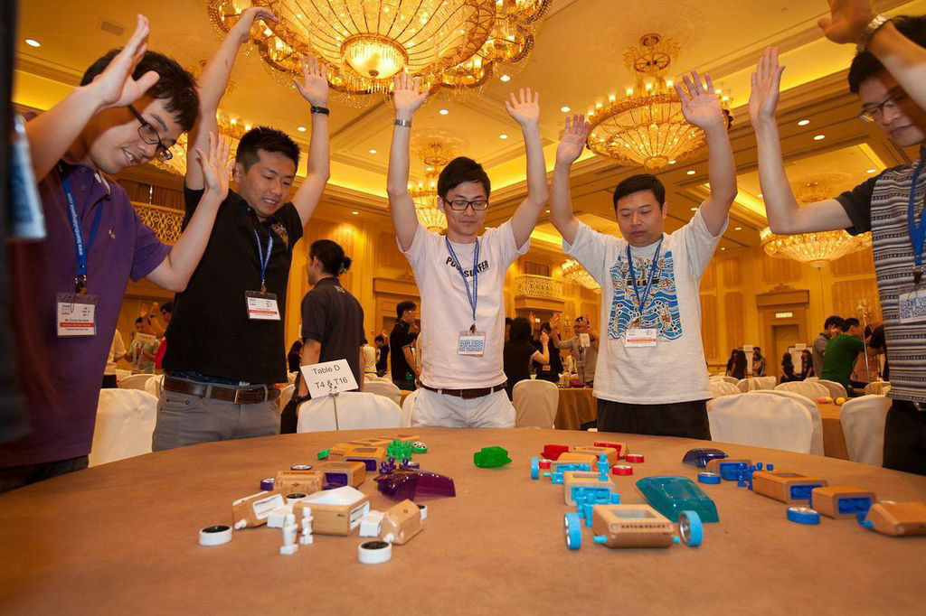 Need 4 Speed is a time and motion study in miniature, a frenetic table-based activity that encourages participants to review and improve performance. Faced with a jumble of model components teams must switch into overdrive to assemble a range of ‘snap together’ concept cars in record time.