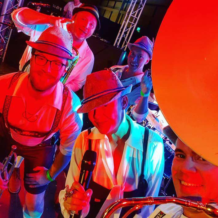 Our German-themed band plays Oompah-style pop covers and playing traditional Bavarian music, whilst dressed in authentic costumes and Lederhosen