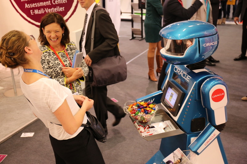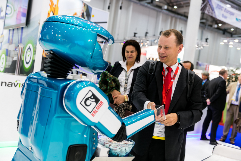 Oscar can tailor this interaction to suit any given occasion, whether that be stopping delegates to discuss client products and services, or perhaps 'meeting and greeting' at retail openings and product launches. Regardless of the event people's reaction upon meeting him is 'always' the same... It's not usual to hear people remark, "How does he do that?" or "That's amazing". This interaction usually concludes with a member of the sales team guiding visitors onto their stand whilst Oscar bids them goodbye with a "catch up with you later" as they disappear.