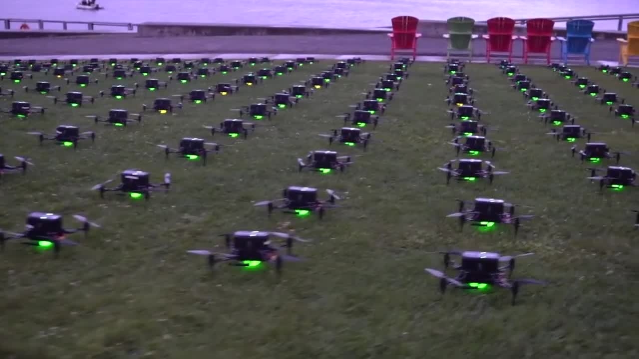 Drones can be used to create 3D shapes, logos, words and even QR codes - they are a perfect way to draw crowds at a nighttime event