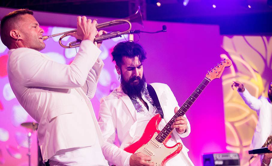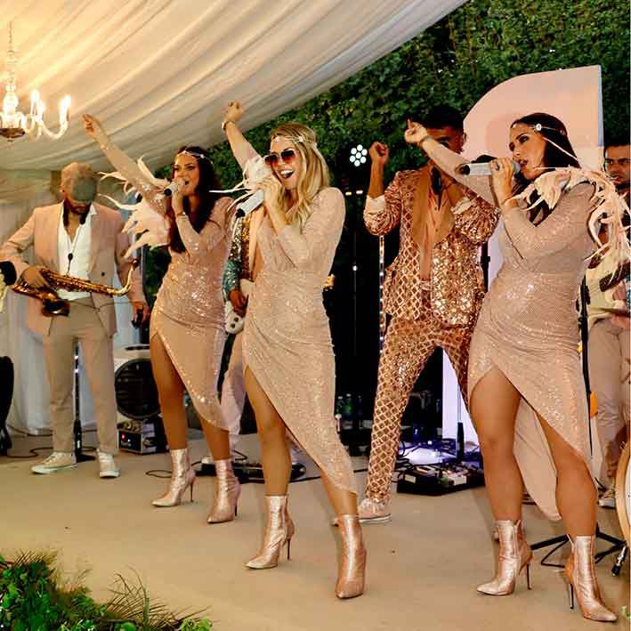 Incorporating wow factor choreography and staging into their impressive live shows, the musicians in our function band don’t just sing, they perform. Band members have worked with international superstars including Kylie, Ed Sheeran, James Arthur, Imelda May, Rod Stewart, Rhianna, Justin Timberlake, Robbie Williams, Katy Perry and many more. They also regularly perform at the world’s most beautiful venues like The Dorchester, The Savoy and Hilton Park Lane, not to mention huge events like The Royal Variety Show and Dubai Film Festival.