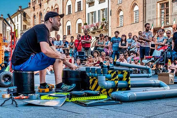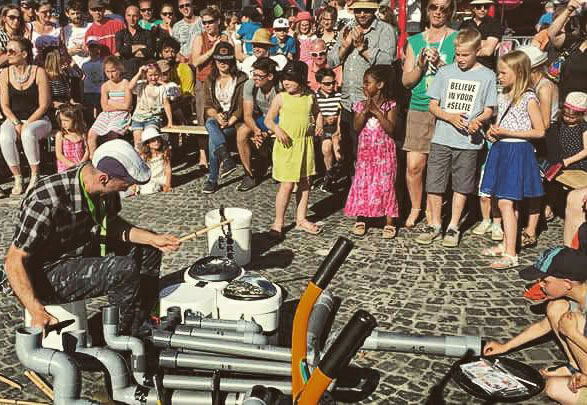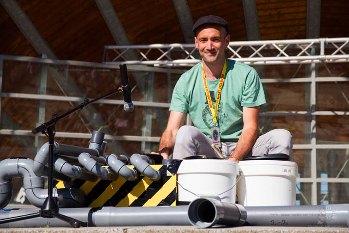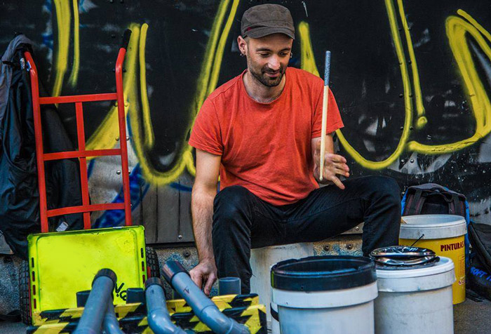 Continuously reinventing his recycled instrument setup, our musician brings a sustainable and unexpected edge to any event focused on green values or innovation