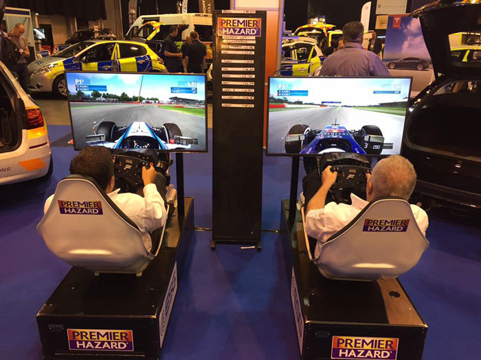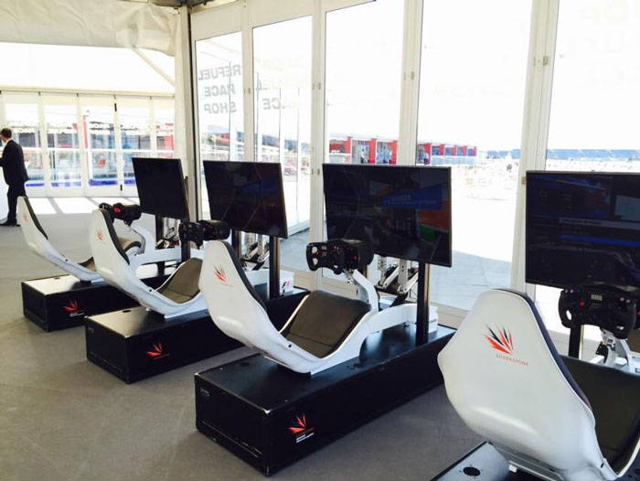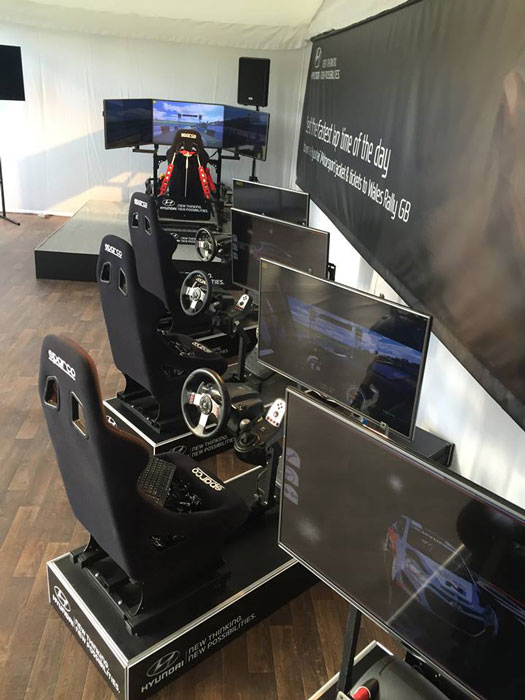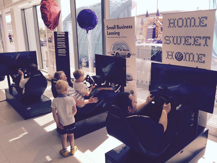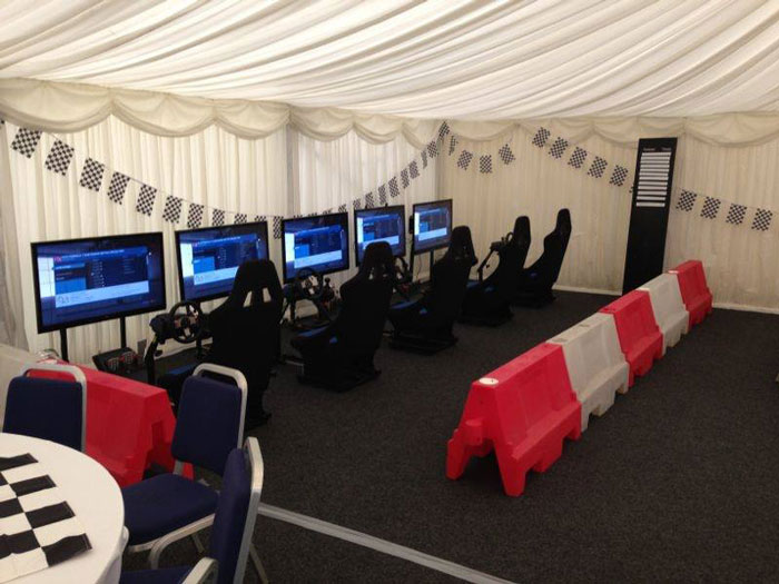 The racing car simulator can be booked as a full or half car can either have one or three 42" screens each and a spectator screen for the audience to see how the participants are getting along.