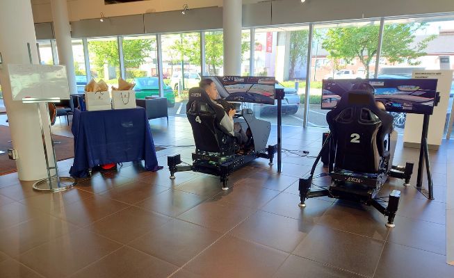 This sim racing experience is a crowd-puller and branding opportunity for trade shows, office parties, networking events, and product launches