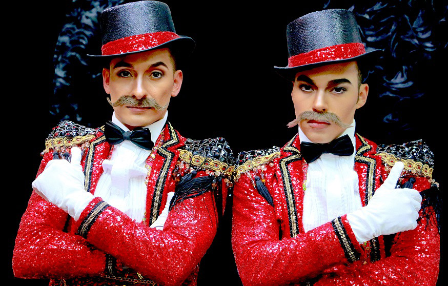 Wonderful walkabout act featuring masterfully crafted circus costumes.