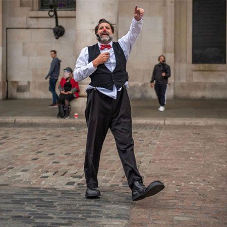 You can expect a variety of skills incorporated into our roaming comedy entertainer's dynamic performances, such as juggling, slapstick, improv and gravity-defying stunts, with plenty of clowning around and audience engagement.