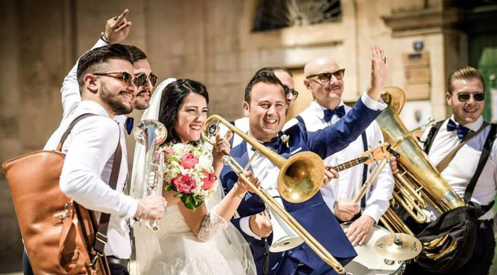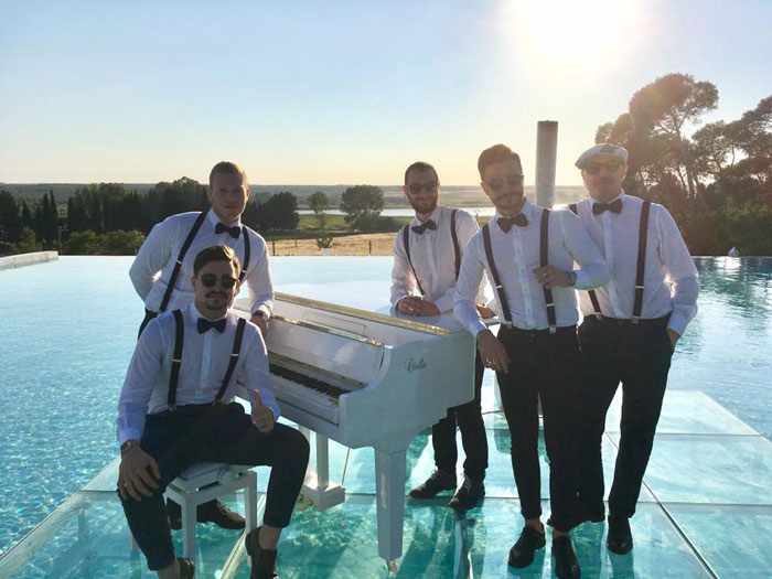Roaming Swing Band Italy's second entertainment option consists of a classic jazz quintet performed in the usual performance style with microphones, amplifiers and their instruments on stage. This mix and mingle jazz band are notorious for their outstanding Dixieland jazz which is a traditional style of jazz first formed in the 1920s and 1940s.