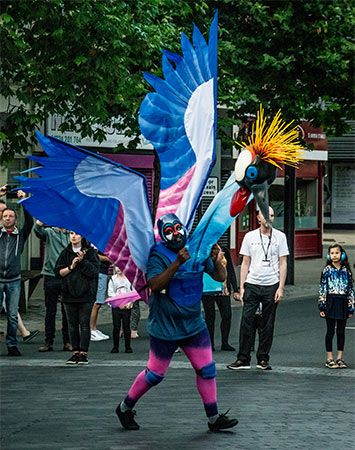 Brightly coloured and highly, engaging our roaming Crane duo are the perfect choice for carnivals, garden parties, tropical-themed events and more