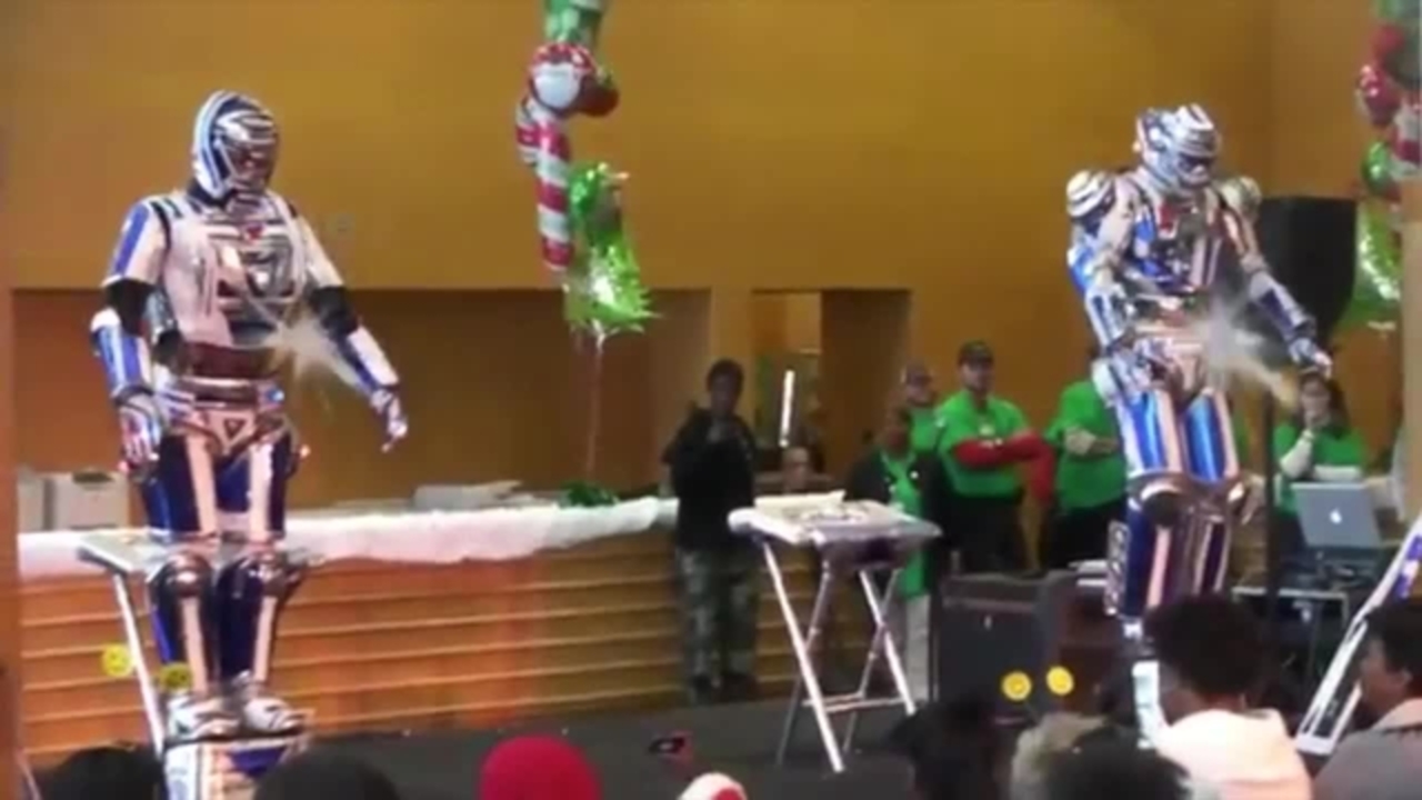 Having performed the act for over 10 years now, the Robot Entertainers use various visual props alongside modern techno music and contemporary dance to ensure that any watching audience is up and dancing with them in no time.