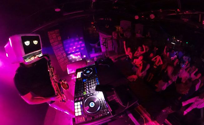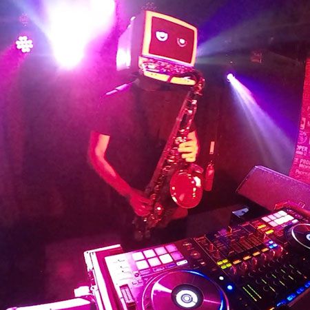 This Robot Head DJ delivers a high-energy performance while playing live saxophone, mixing tracks across electronic, hip-hop, Latin and classics