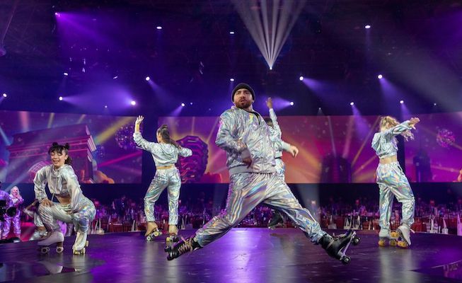 Their slalom act showcases fancy footwork and incredible technical skill as skaters manoeuvre around a serious of cones at high speed - audiences won’t believe their eyes as these skaters weave in and out of obstacles with incredible precision! For additional effect, this show can be performed in the dark with illuminated cones and costumes.