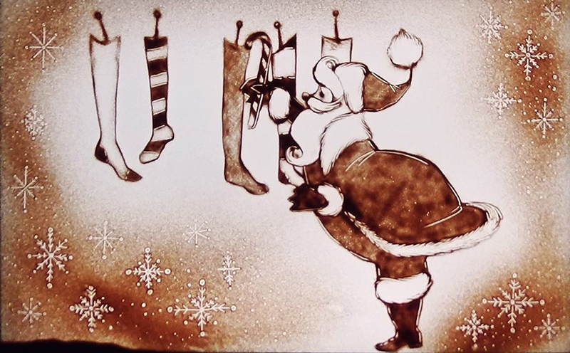 Sand animation can be accompanied by live music for greater impact. Our live event artist has collaborated with numerous live musicians and orchestras throughout the years and will be happy to share the stage again at your event. Making every sand art piece unique, each story can be fully tailored to a specific theme or topic.