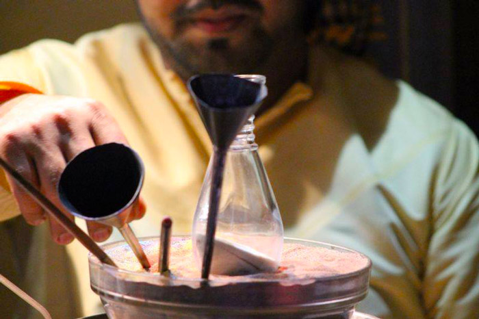 The UAE-based sand bottle artist creates exceptional gifts that your guests can take home and cherish forever. Using his specialist skills, craft tools and coloured sand, he is able to create miniature works of art inside a variety of different sized glass bottles. Working to client specifics, this sand artist layers different coloured sands and uses his craft skills to create images as well as being able to write text on the inside of the bottle.