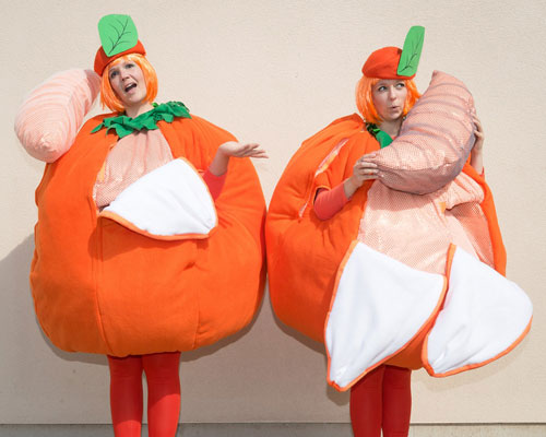 Provide your upcoming special event with an extra amount of spice by booking our exceptional satsumas! Create a dazzling and stand out event experience by treating your guests to our wonderful spirted costumed performers, who will deliver a fun and cheerful walkabout act and roaming act that your guests are bound to love. Let our exceptional cheeky performers interact with your guests as they all discover which of our pair of performers is sweet and which is sour! A fun interactive entertainment experience that is funny and sweet tasting.