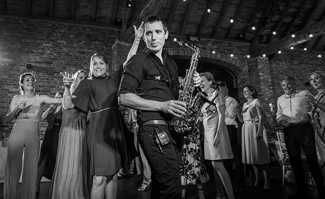 Whether playing from a fixed spot or moving through the venue, he can adapt to suit the atmosphere and engage your guests