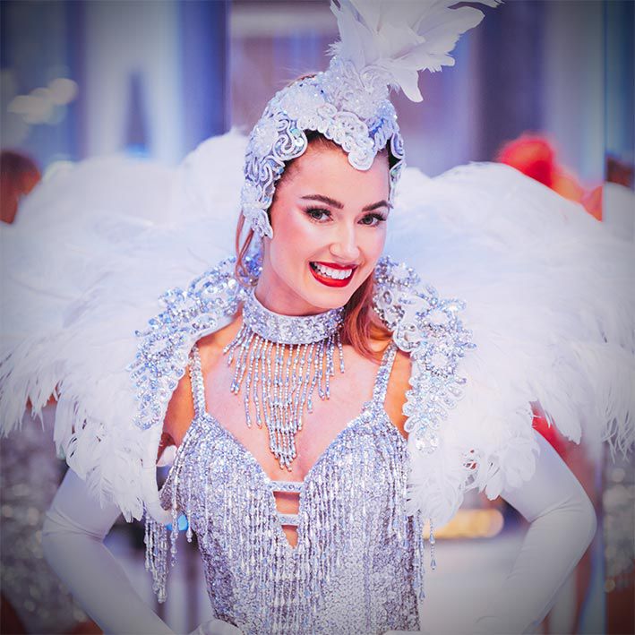 Dressed in stunning, high-end costumes featuring sequins, tassels and feather headpieces, our Vegas showgirls will impress your guests from the moment they set foot in the door of your event.