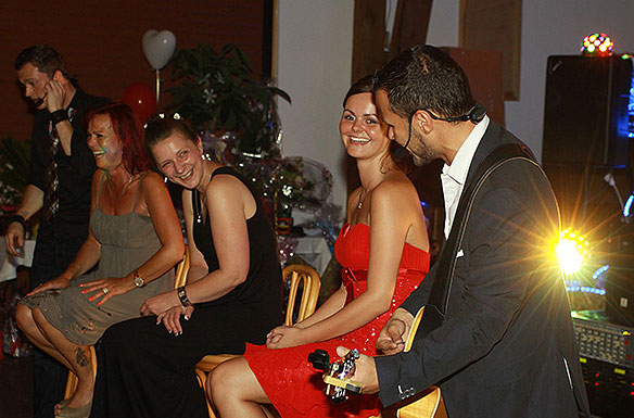 - Wedding: 30-40 mins show audience and newly weds integrated into the programme. Fun for surprise shows!