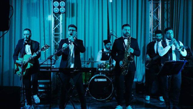 The band performs with seven musicians, including voice, keyboard, guitar, bass, drums, sax and trumpet for a versatile lineup tailored for events