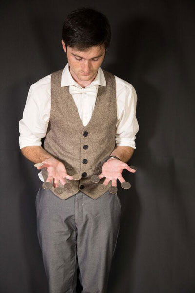 Highly entertaining and interactive, our charming young walkaround magician will deceive, hustle, trick and rob your guests but they will love it! One of his highlights includes 'the miser's dream', where he makes coins appear from everywhere from ears, mouths, pockets, watches and even beards!