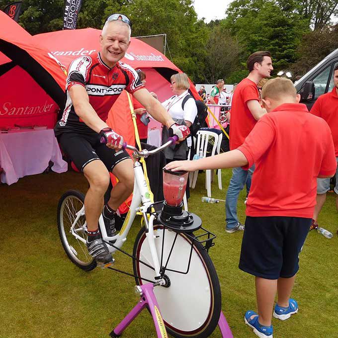 Based in Cambridge, our brandable smoothie bikes are available to encourage healthy living amongst guests at events across the UK