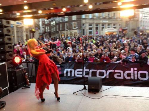 " [She] is a young violinist who plays to some pretty fancy backing track arrangements. The whole delightful confection is further sweetened by great stage moves and a bright and breezy approach. Comparisons with the Vanessa Mae mode of sex appeal certainly, but hopefully her own future niche to carve. "