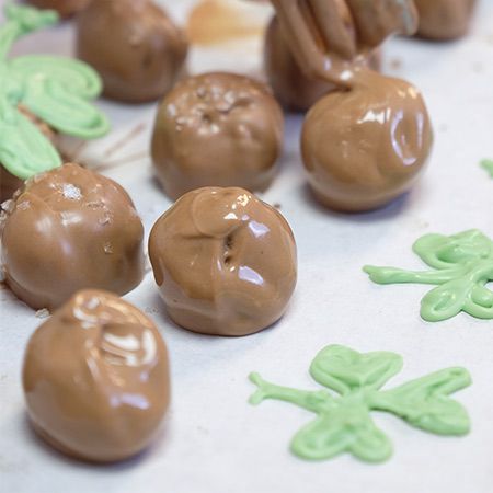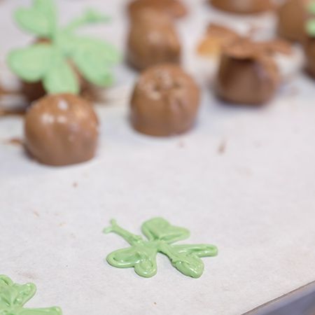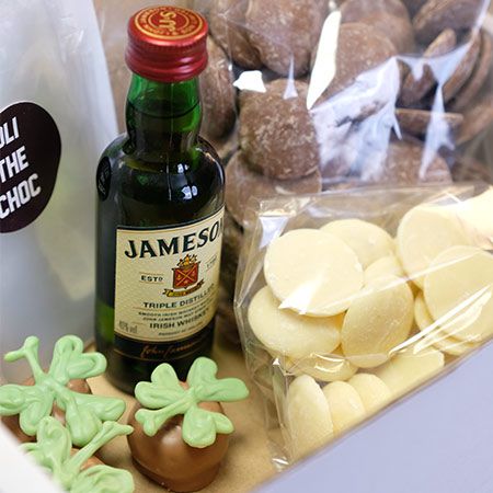 Choose from a Guinness or Jameson miniature to flavour your St Patrick's day chocolate truffles and learn to make cute clover decorations to finish