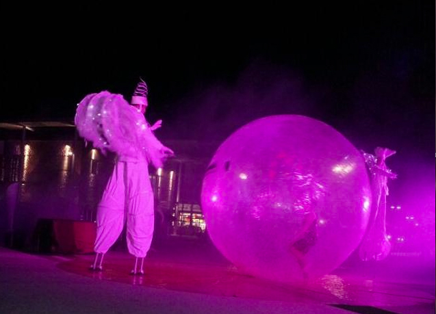 The LED stilt performers will mix and mingle and interact with guests and entertain as they go. They are available with Light Jugglers, acrobats and a contortionist inside a giant bubble.