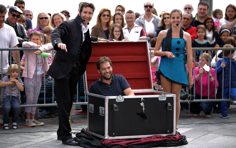 Ideal magic entertainment option for street celebrations, festivals and any other outdoor event, our Street Magic Show is an exciting and exhilarating experience for people of all sorts regardless of age. These experienced street performers always capture public’s attention by interacting with them, and they will always encourage audience’s participation during their 40-minute performances. They can perform their show in French, English, Italian and Spanish, so be aware anyone watching can be asked to join them to carry out one of their magic tricks!