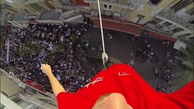 Can be themed and tailored and take place wherever he is able to tie his rope, shopping centres, between buildings, anywhere