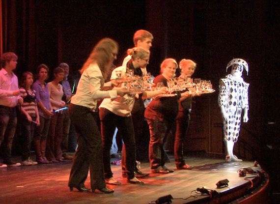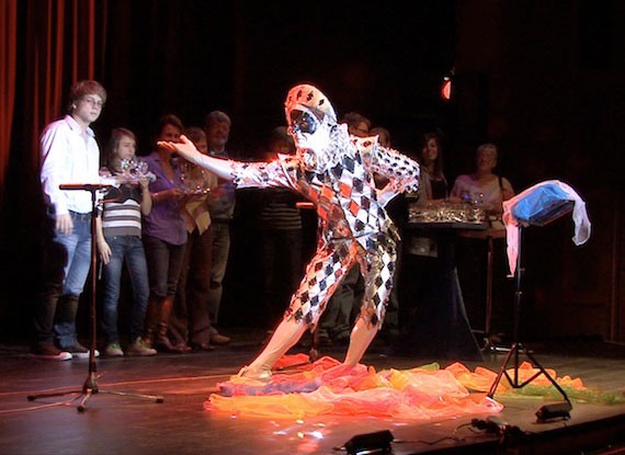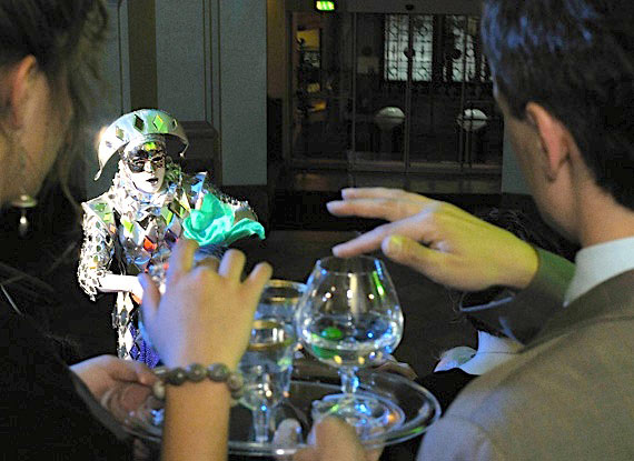 Up to 20 guests are invited to share in the art of glass playing and learn a melody to which the remaining audience hum along. From his magical box, the Harlequin glass player himself will pull seemingly endless multi-coloured scarves from which the orchestra will take their cues. Guests will be amazed by the enchanting sounds that they produce!