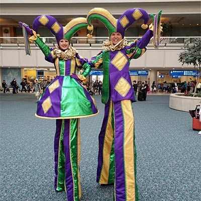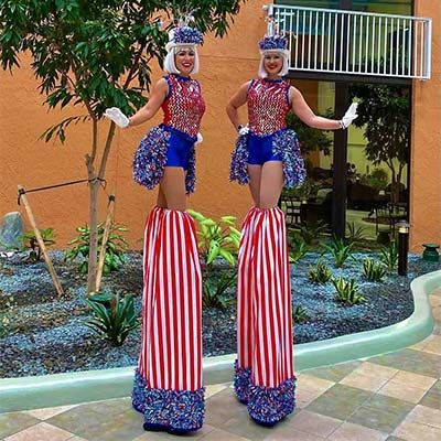 Based in Florida our male and female stilt walkers are available to perform over the US