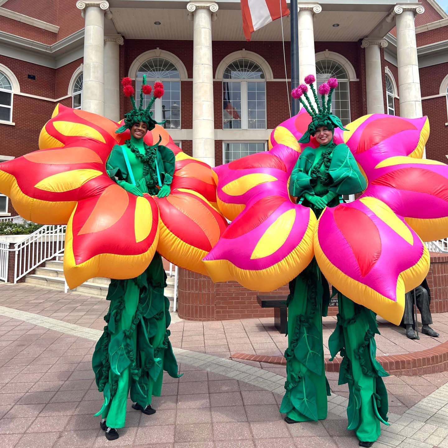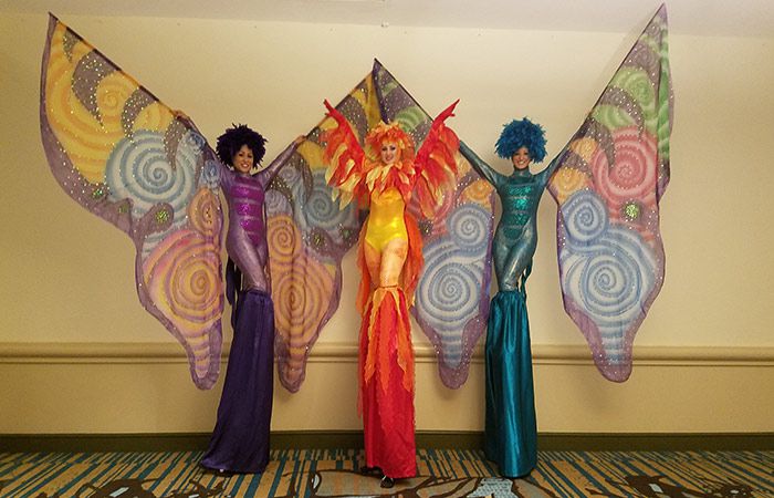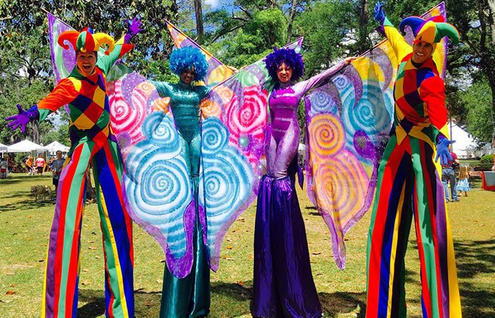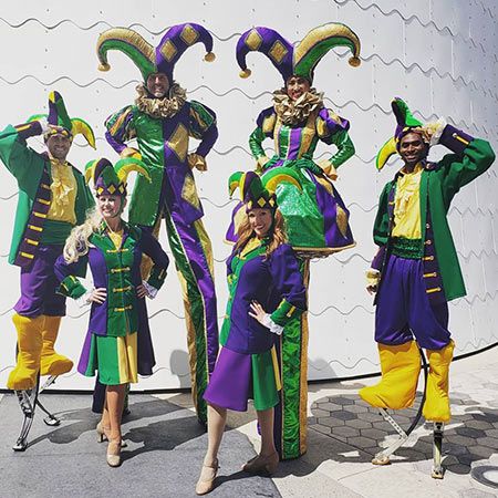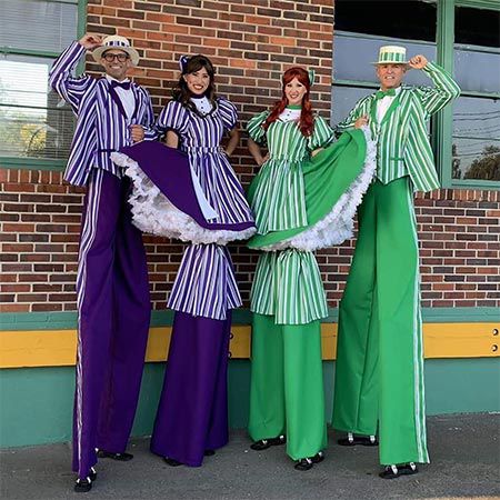 Our stilt walkers are the ideal strolling entertainment option for outdoor events, themed events, festivals, private parties, and more!